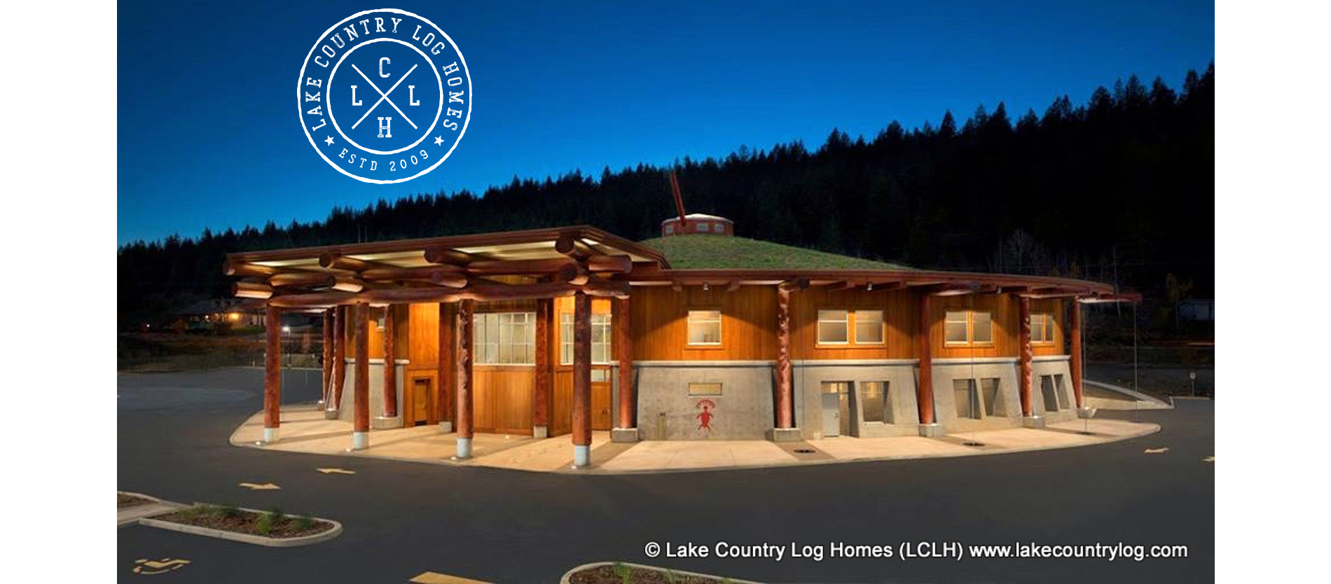 In 2014, Lake Country Log Homes was privileged to build the Handcrafted Western Red Cedar Log Post and Beam structure of the Splatsin Community Centre in Enderby, British Columbia. The 33,581 square foot center is based on a traditional round house building method and can host over 1,000 people. It contains 24 log posts and roof beams, which terminate on a compression ring in the center of the roof. We were very happy to have a part in this incredible project and we want to work with you on something incredible too!